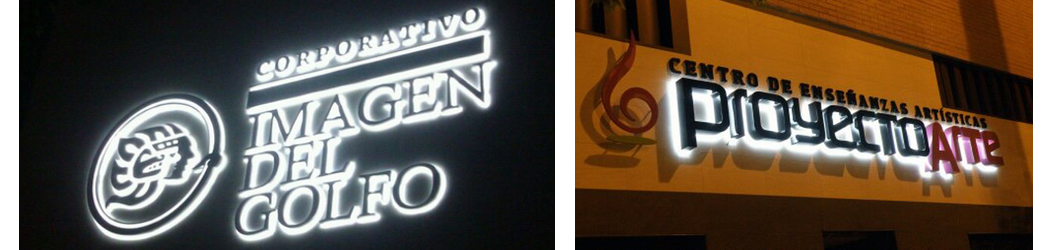 Fabricación de letras individuales, pintadas con base de primer y pintura automotriz conforme a pantones enviados e iluminación led blanco.